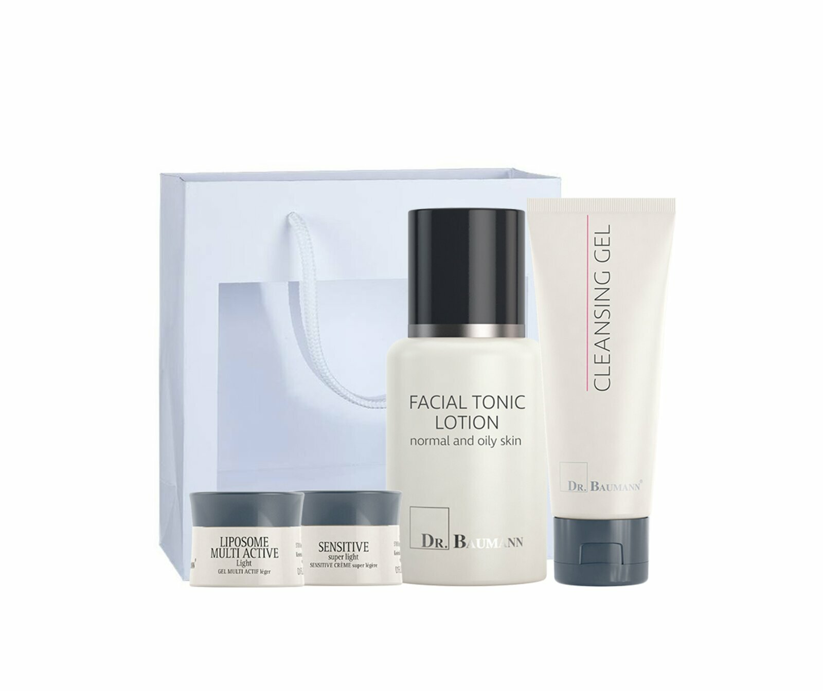 Sada obsahuje Čisticí gel (75 ml), Pleťovou vodu pro mastnou a normální pleť (75 ml), vzorek Liposomu Light (3 ml) a krému Sensitive Super Light (3ml). Přípravky doplňuje kartička s postupem nanášení a vše je baleno do praktické papírové taštičky s průhledným okénkem. Vzorky, taštička a návod jsou v balíčku zdarma.